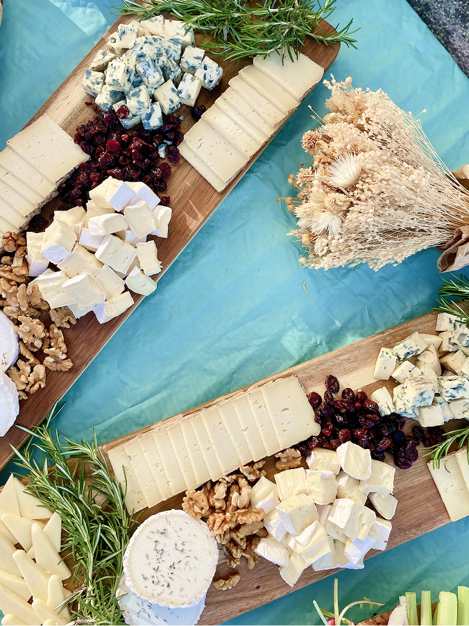 Côté apéro, on compose des plateaux avec des fromages du terroir soigneusement sélectionnés, des crudités croquantes accompagnées de nos dips maison.
